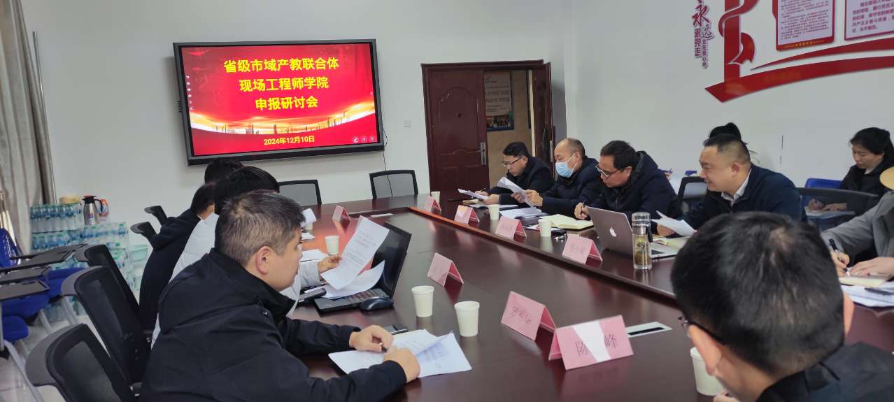 为做好省级市域产教联合体与现场工程师学院的申报工作,2024年12月10日,学校召开了省级市域产教联合体与现场工程师学院申报工作推进会。学校党委委员、副校长杨福盛,旅游学院、经济管理学院、会计金融学院、机电与建筑工程学院、产教融合处相关负责人和教职工参加会议。会议由产教融合处处长、创新创业学院院长、就业指导中心主任、校友工作办公室主任张小斌主持。
